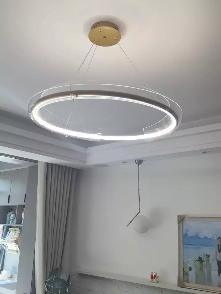 - La conception en forme d'anneau permet à cette suspension de s'adapter à différents espaces, offrant le bon effet d'éclairage pour le salon et la chambre. Le processus d'installation de la suspension est simple et pratique, vous permettant d'intégrer facilement votre décoration dans votre espace domestique.