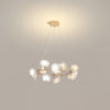 Ce lustre associe des abat-jour en céramique à une structure sculptée en branches dorées, capturant la beauté des fleurs en mouvement. Un élégant mélange d'élégance moderne et d'inspiration naturelle, parfait pour apporter chaleur et raffinement à votre espace de vie.