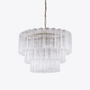 Ce lustre est composé de cinq rangées de tubes en verre transparent cannelé sur une structure dorée satinée, créant une allure architecturale raffinée. Sa structure multicouche offre une diffusion lumineuse optimale et un charme intemporel du milieu du siècle. Parfait pour les salons, les salles à manger ou les grands espaces, il apporte sophistication et polyvalence à tous les intérieurs.
