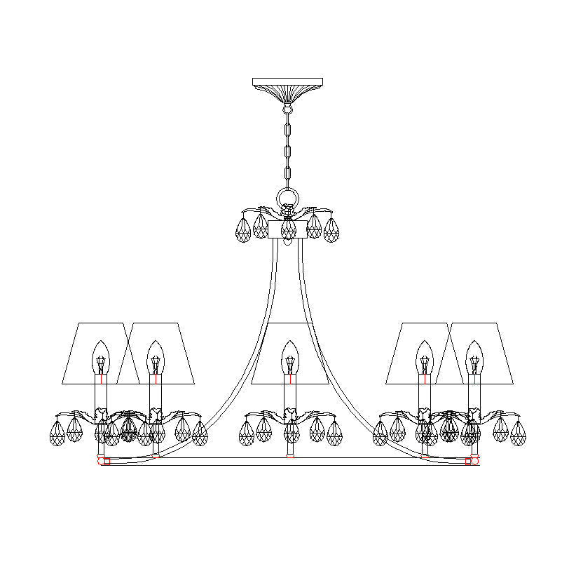 8 têtes : Ø 92 cm x H 53 cm (12 chaînes de suspension)