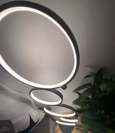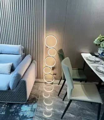 - Le lampadaire est composé de cinq formes circulaires, créant un design épuré et moderne qui apporte une esthétique géométrique unique à votre intérieur.