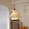 Lampe Suspension Abat-jour en Tissu Superposé à Bords Scallop Bois Minimaliste