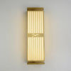 Applique murale verticale en laiton rectangulaire avec des panneaux horizontaux fendus, reflétant l'esthétique des écrans orientaux, idéale pour les halls d'hôtels de luxe et les entrées résidentielles.