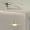 Bras en laiton réglable avec un abat-jour en acrylique en forme de vague et un diffuseur en verre opale blanc, alliant structure géométrique et éclairage ambiant doux, parfait pour les salles à manger contemporaines.