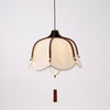 La lampe suspendue présente un abat-jour en tissu délicatement festonné et des accents en bois riches, ajoutant une lueur chaleureuse et nostalgique à n'importe quel espace. Parfaite pour les salles à manger, les salons ou les coins cosy, ce lustre élégant améliore l'ambiance et élève le style de chaque pièce.