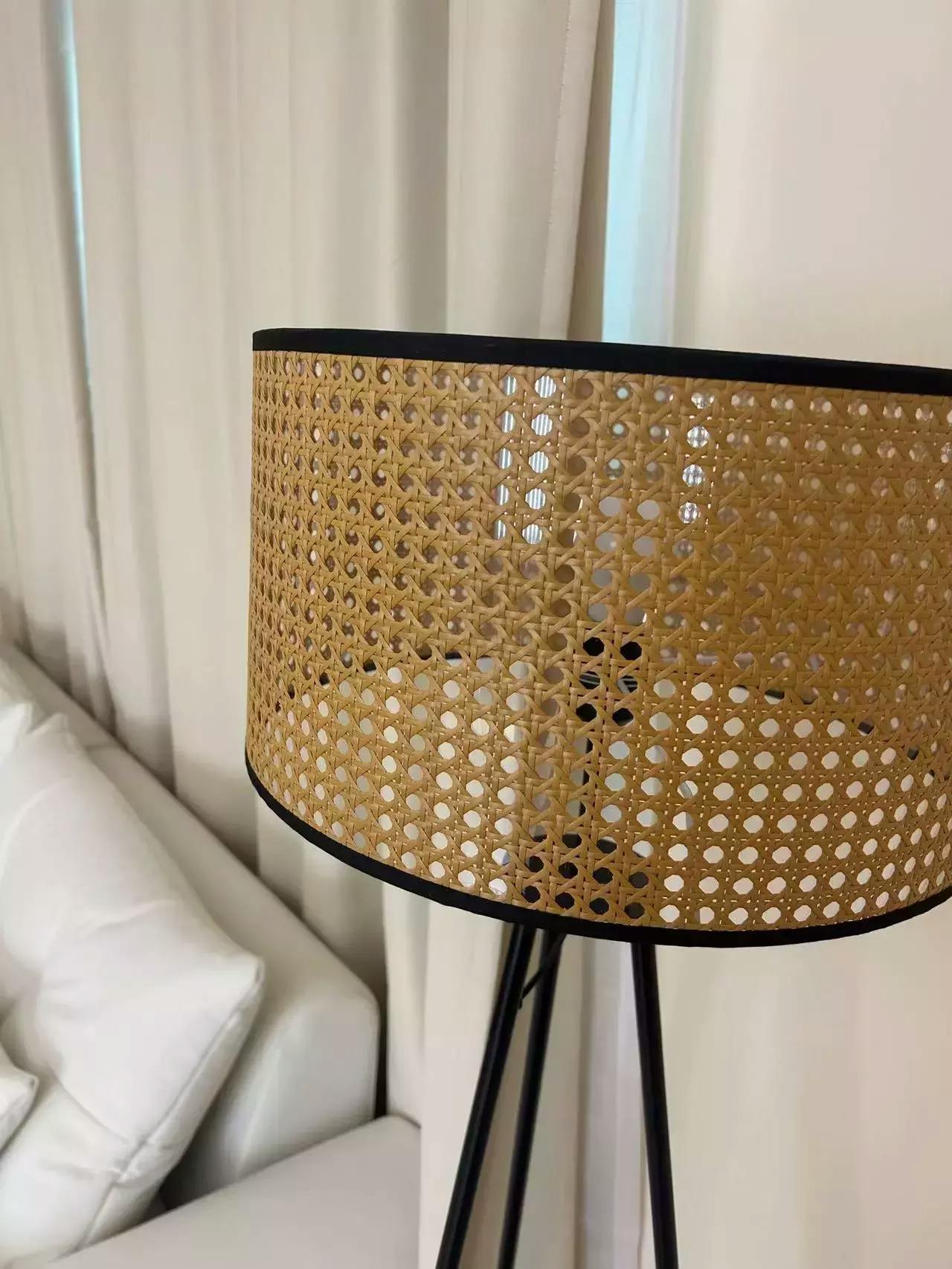 - Le matériau utilisé pour le cadre est un métal solide et résistant à la corrosion, ce qui garantit une durabilité et une longue durée de vie à la lampe. De plus, l'abat-jour en rotin tissé ajoute une touche naturelle et organique à son design, créant ainsi un contraste intéressant avec la modernité du cadre en métal.
