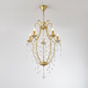 Ce lustre exquis en forme de cage à oiseaux apporte une touche élégante à n'importe quel espace. Fabriqué à la main avec un design unique de cage à oiseaux, il dispose de cinq lumières, accompagnées d'une abondance de chaînes en cristal et de magnifiques gouttes en verre. Fabriqué sur mesure rien que pour vous, il est fini avec un revêtement en or vintage minutieusement peint à la main et orné d'accents en verre transparent et de luxueuses gouttes en cristal.