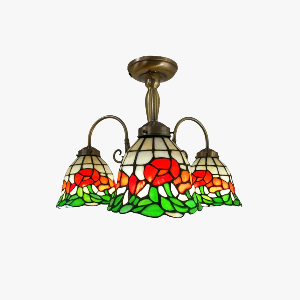Tiffany Rétro LED Fleur Lustre Colorée Bar/Chambre À Coucher/Salon