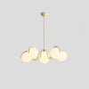 Ce lustre linéaire courbé présente une armature sculpturale avec des globes en verre blanc, offrant un éclairage doux et uniforme – parfait pour les chambres ou salons au style moderne.